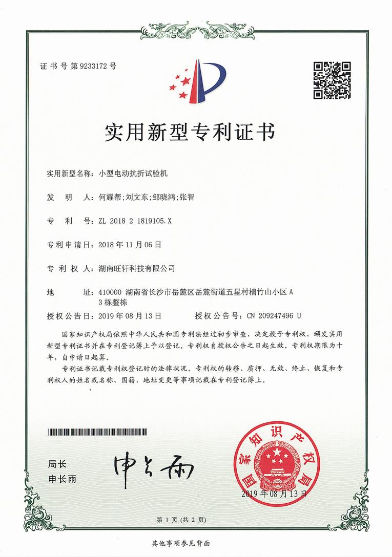實(shí)用新型專利-小型電動抗折