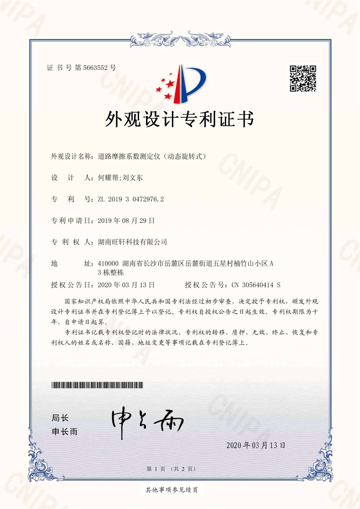 外觀專利-道路動態(tài)旋轉(zhuǎn)摩擦系數(shù)測定儀
